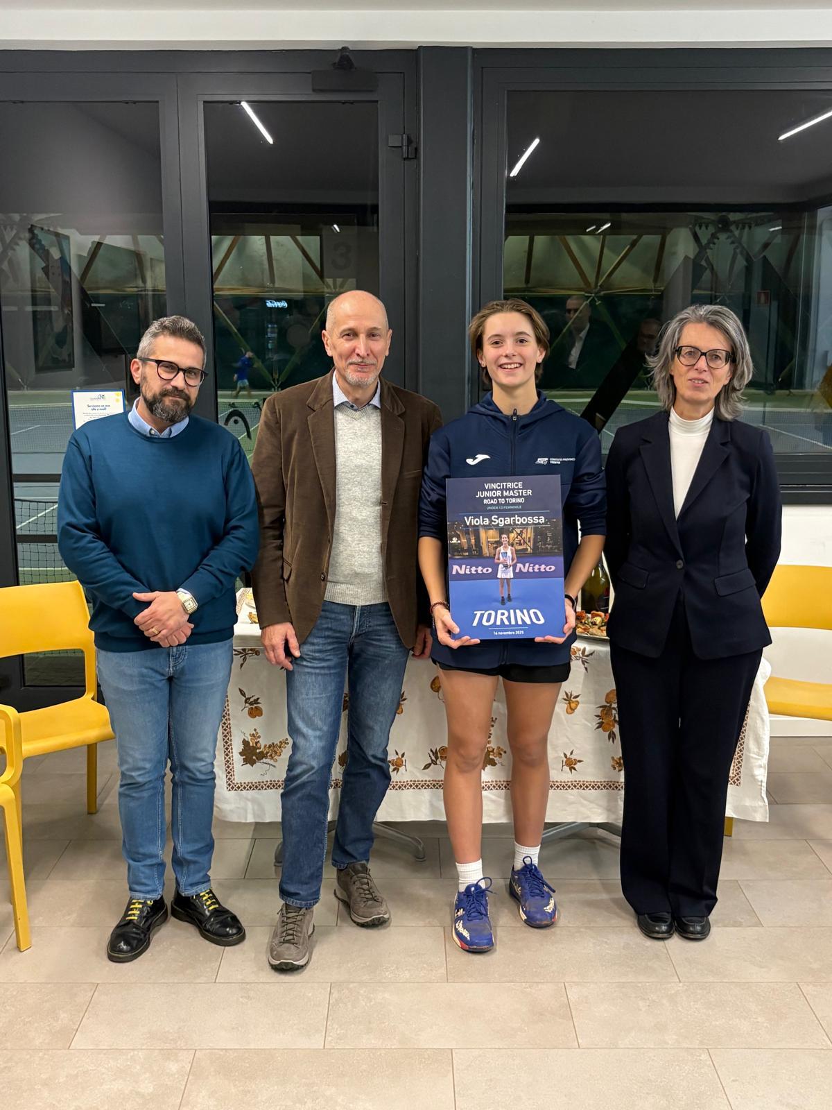 E’ stato Luca Fruner a fare gli onori di casa e a regalare alla giovane tennista una gigantografia della foto che le è stata scattata a Torino, all’Inalpi Arena, sul campo dove ha giocato e vinto e sul quale si allenavano Sinner e gli altri sette protagonisti delle Atp Finals.